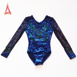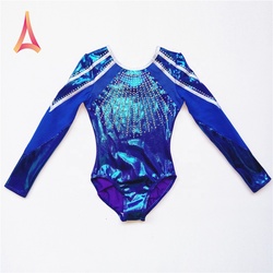 Sparkly Sâu Royal Blue Cô Gái Dài Tay Leotard Thể Dục Dụng Cụ Đồng Phục