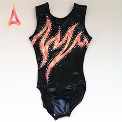 Nylon Spandex Thể Dục Nhịp Điệu Leotards Ngọn Lửa Xe Tăng Leotard Với Pha Lê