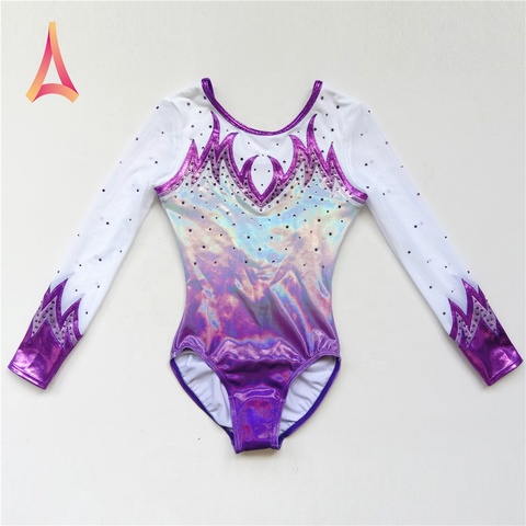 Trắng tím Ombre dài tay áo Thể dục dụng cụ leotards Cô Gái Thể dục dụng cụ leotards