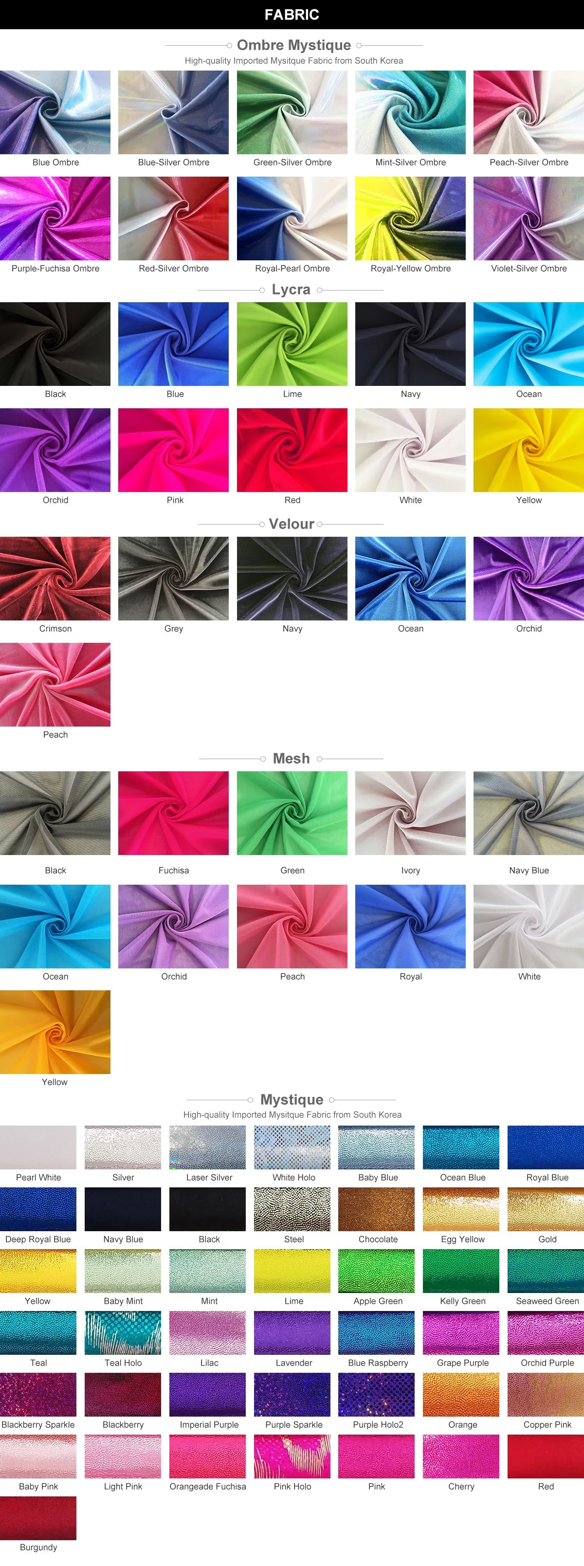 Acme Apparel Co.,Ltd.offers fabrics that are produced to meet high stretch and quality standards. As the leading manufacturer specialized in gymnastics leotards, it's important for us to advise you of the tendencies of certain fabrics, as well as practices to avoid.